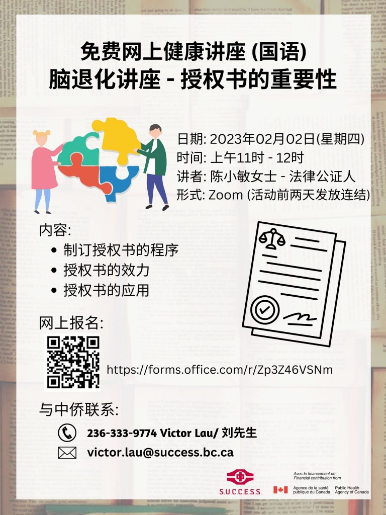 免费网上健康国语讲座 脑退化讲座 – 授权书的重要性 | Online Mandarin Dementia educational workshop – The Importance of Power of Attorney